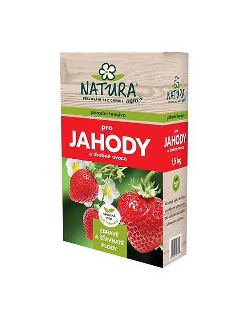 NATURA Organické hnojivo pro jahody a drobné ovoce je vysoce kvalitní přírodní organické hnojivo ve formě granulek. Používá se pro jahody, rybíz, angrešt, maliny, ostružiny, vinnou révu a další ovoce, u něhož podporuje nárůst rostlin, tvorbu a vyzrávání
