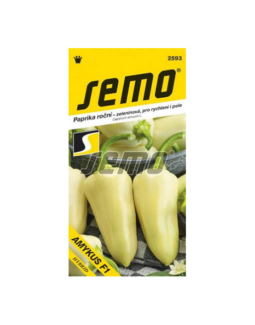 Paprika roční Amykus F1 je nový hybrid typu Amy s hladkým, silnostěnným, smetanově bílým plodem, poskytuje stabilně vysoké výnosy tvarově vyrovnaných plodů i v méně příznivých letech.
